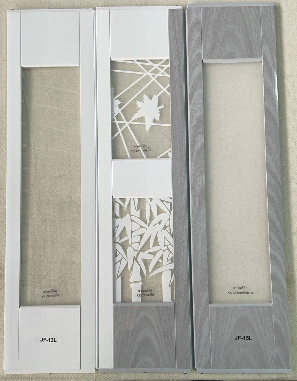 ฉากกั้นห้อง รุ่นใหม่อีกหนึ่ง เป็นฉากแบบกระจกยาว ที่จะช่วยเพิ่มความภูมิฐานให้กับบ้านของท่าน ใบฉากกว้าง 11 ซม. มีความแข็งแรงทนทาน มาพร้อมอุปกรณ์คุณภาพดี มีให้เลือกถึง 3 สี อีกทั้งมีลายกระจกให้เลือกมากถึง 8 ลายด้วยกัน และสามารถทำความสูงได้ถึง 3.00 ม. จึงช่วยให้การจัดแบ่งห้องไม่น่าเบื่ออีกต่อไป เพราะความหรูหราที่มาพร้อมดีไซน์ที่สวยงามและลงตัว และยังคงคุณสมบัติโดดเด่นไว้ครบถ้วน ติดตั้งง่ายใช้พื้นที่น้อย และยังช่วยลดการทำงานของเครื่องปรับอากาศ จึงช่วยให้ประหยัดไฟได้เป็นอย่างดี